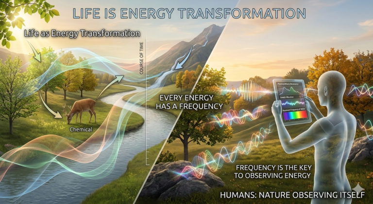 Ultimately, the “course of time” is what allows us to experience these frequencies. If time stood still, there would be no “cycles per second,” and therefore no frequency at all. But because time moves, energy can dance. This suggests that life is essentially a “Symphony of rhythms” played out over a lifetime. Each species, each person, and each cell has its own instrument and its own part to play in the grander frequency of the planet. By studying these waves, we aren’t just looking at math; we are looking at the very shorthand the universe uses to organize itself and keep the “transformation” of life moving forward in a coherent, beautiful way😊.